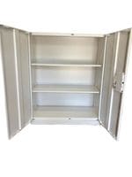 生興製の両開き書庫です。目立つ傷もなく、きれいなホワイトがオフィスをパッと明るくしてくれます。ダイヤル式の書庫になりますので、鍵は不要です。4ケタの数字を合わせることで、書庫の施錠・解錠ができます。