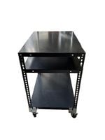 ITOKI製のブラックの軽量棚です。小さいながらもがっちりとした丈夫な作りで、重量物を載せても安心感があります。キャスター付きのため、移動も楽に行えます。ストッパー付き。